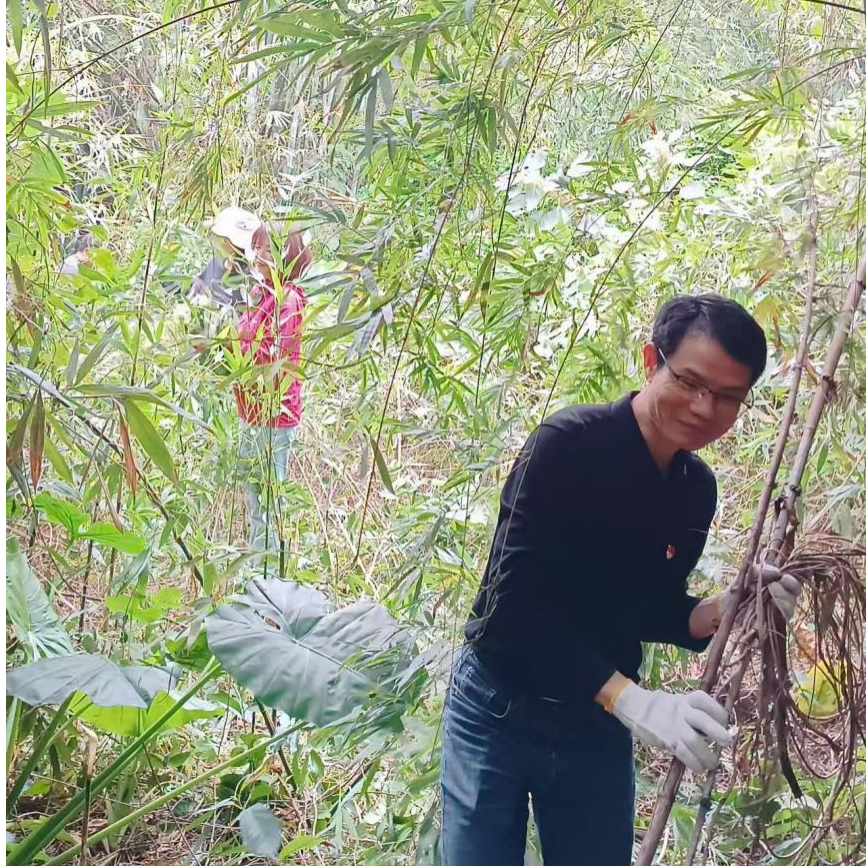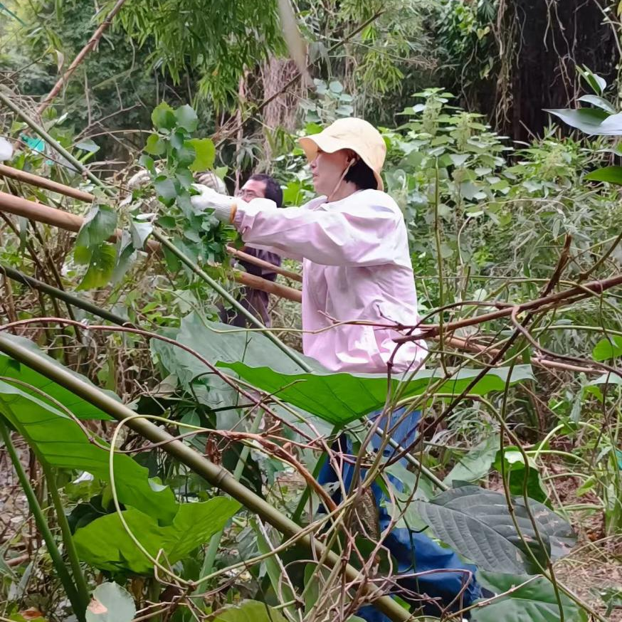 活动期间,全体教师党员和研究生党员代表分为多个小组,分区域开展清理工作。大家分工协作,配合默契,有的负责拔除地面上的微甘菊,有的负责清理侵袭低处蕨类的五爪金龙,有的负责消灭高处盘缠的松筋藤。