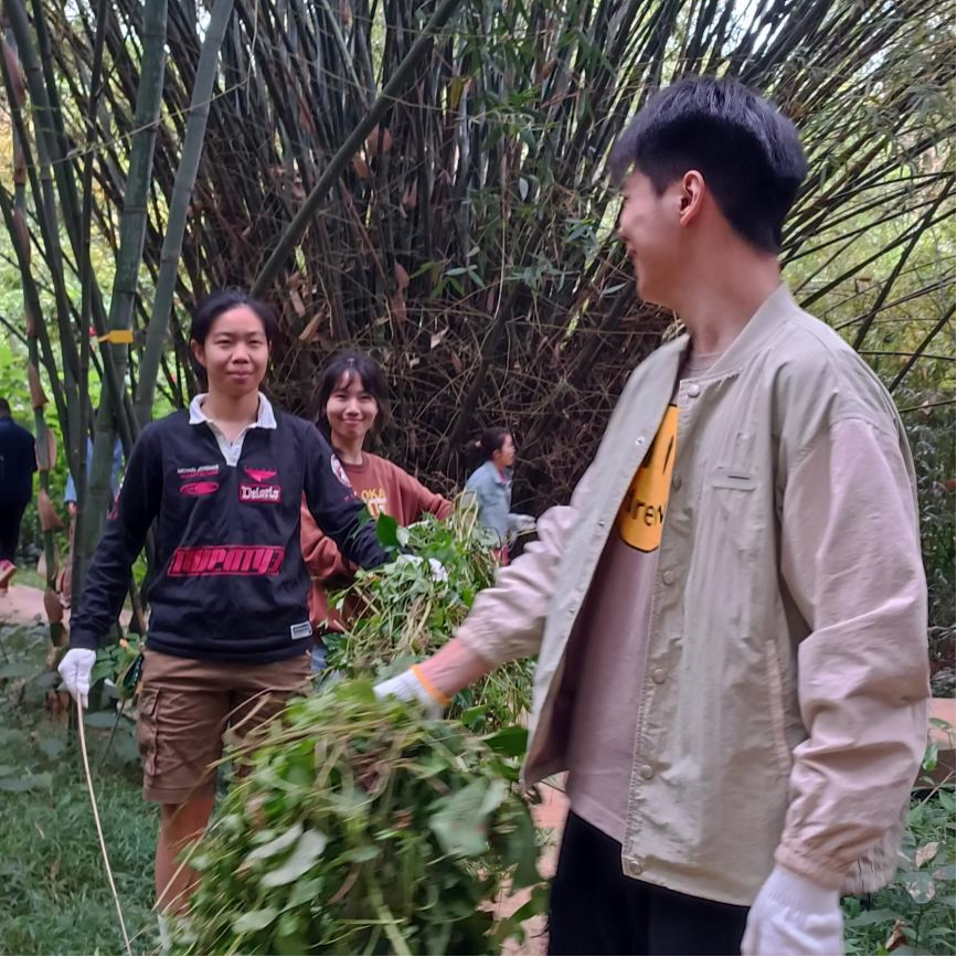 师生们热情高涨,不怕脏、不怕累,充分展现了党员勇于担当、甘于奉献的精神风貌。经过两个多小时的共同努力,竹园环境焕然一新,不仅美化了景观,也为相关科研工作的顺利开展提供了更加整洁、安全的环境保障。