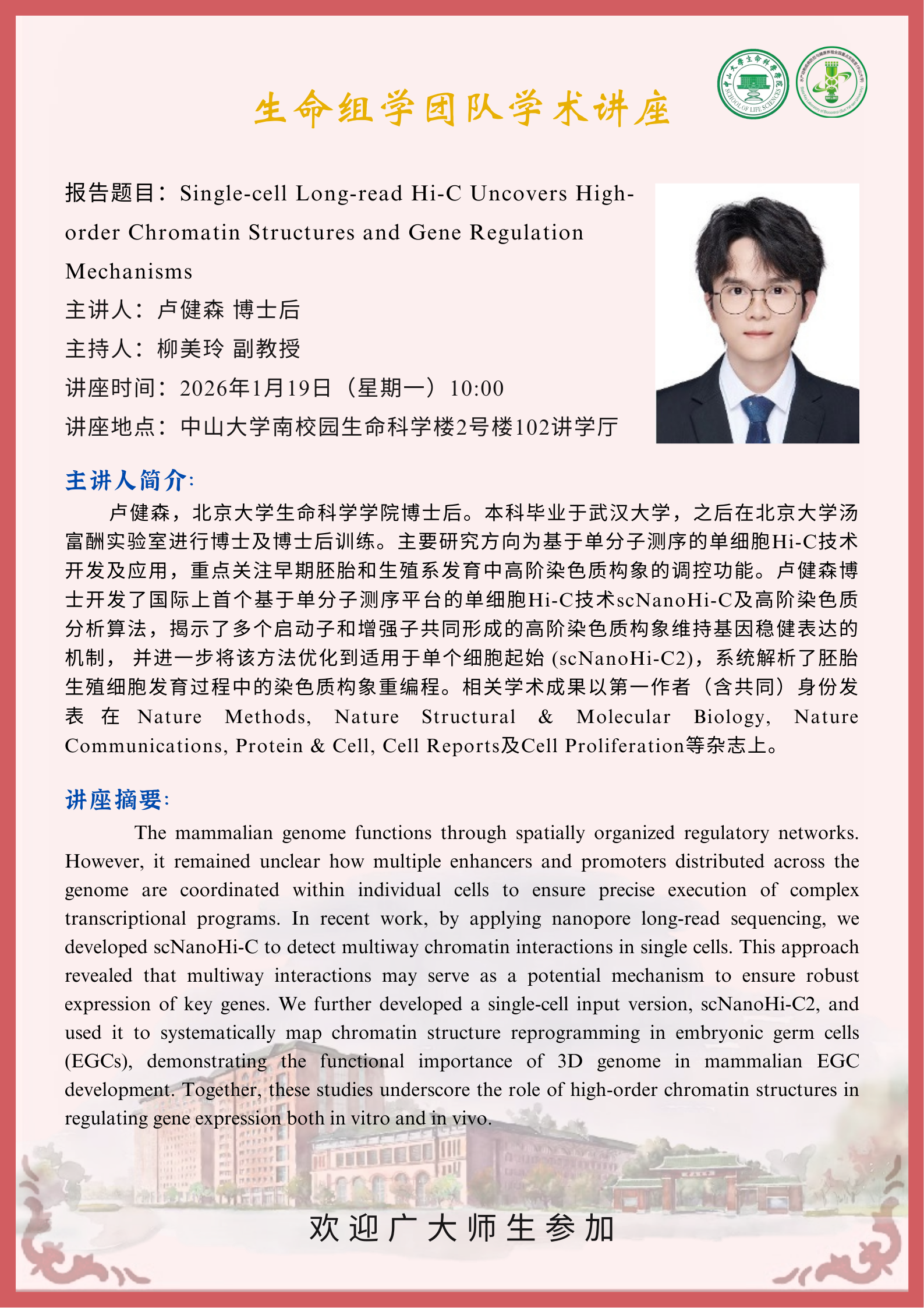 2026年1月19日生命组学团队讲座:Single-cell Long-read Hi-C Uncovers High-order Chromatin Structures and Gene Regulation Mechanisms