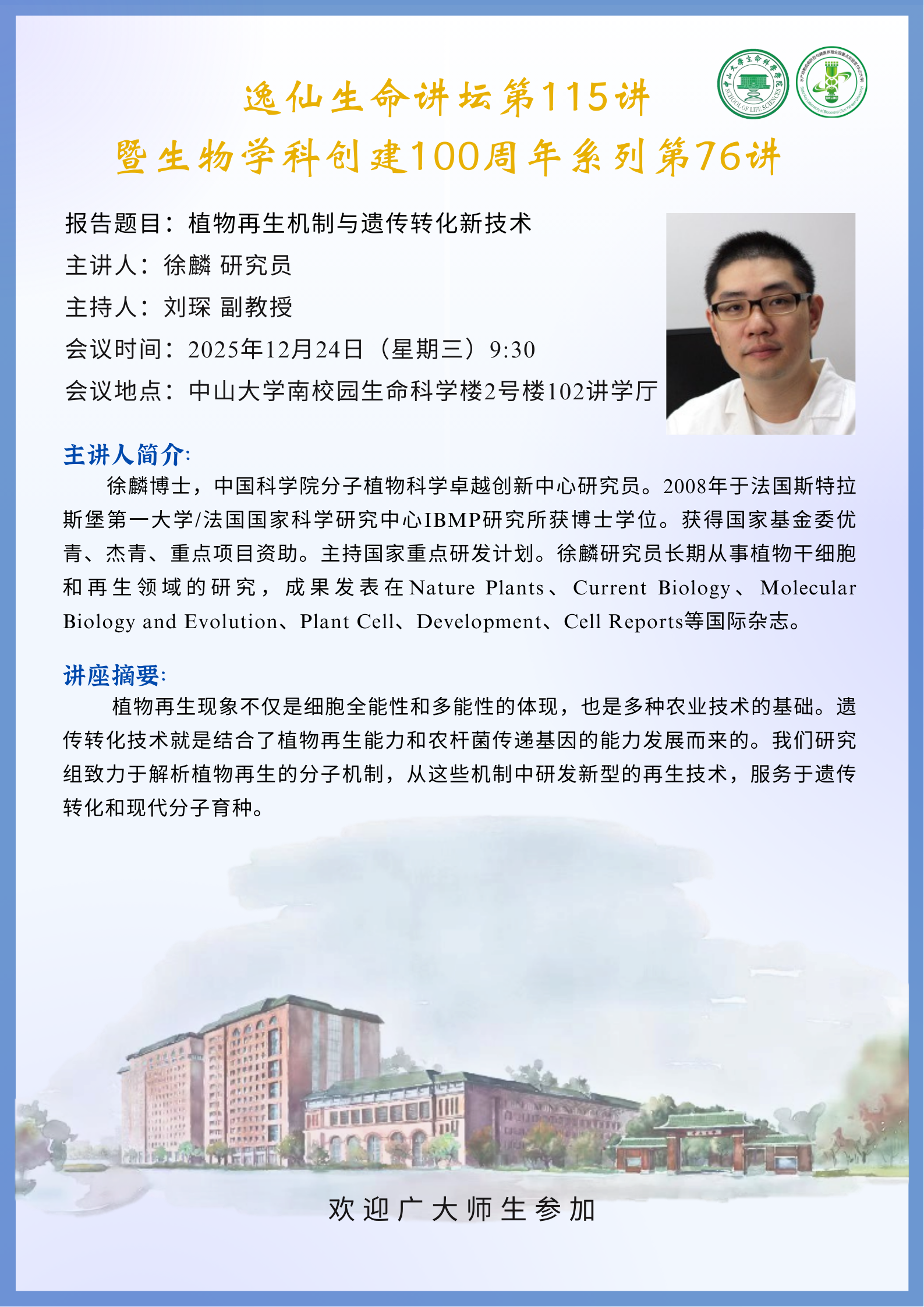 2025年12月24日赌博app 逸仙生命讲坛第115讲:植物再生机制与遗传转化新技术