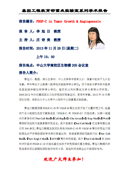 欢迎参加11月26日基因工程教育部重点实验室学术报告