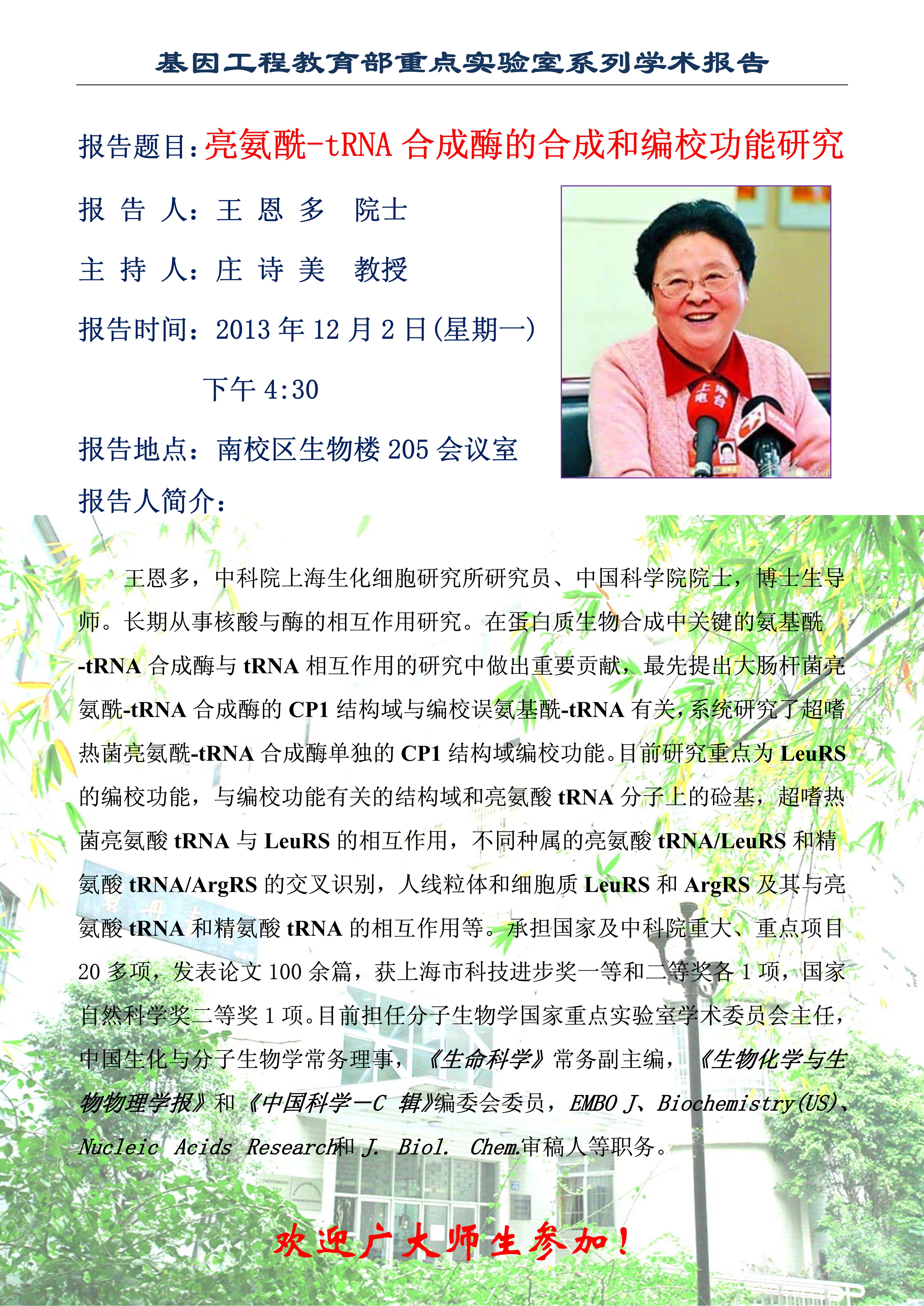 欢迎参加12月2日王恩多院士学术报告