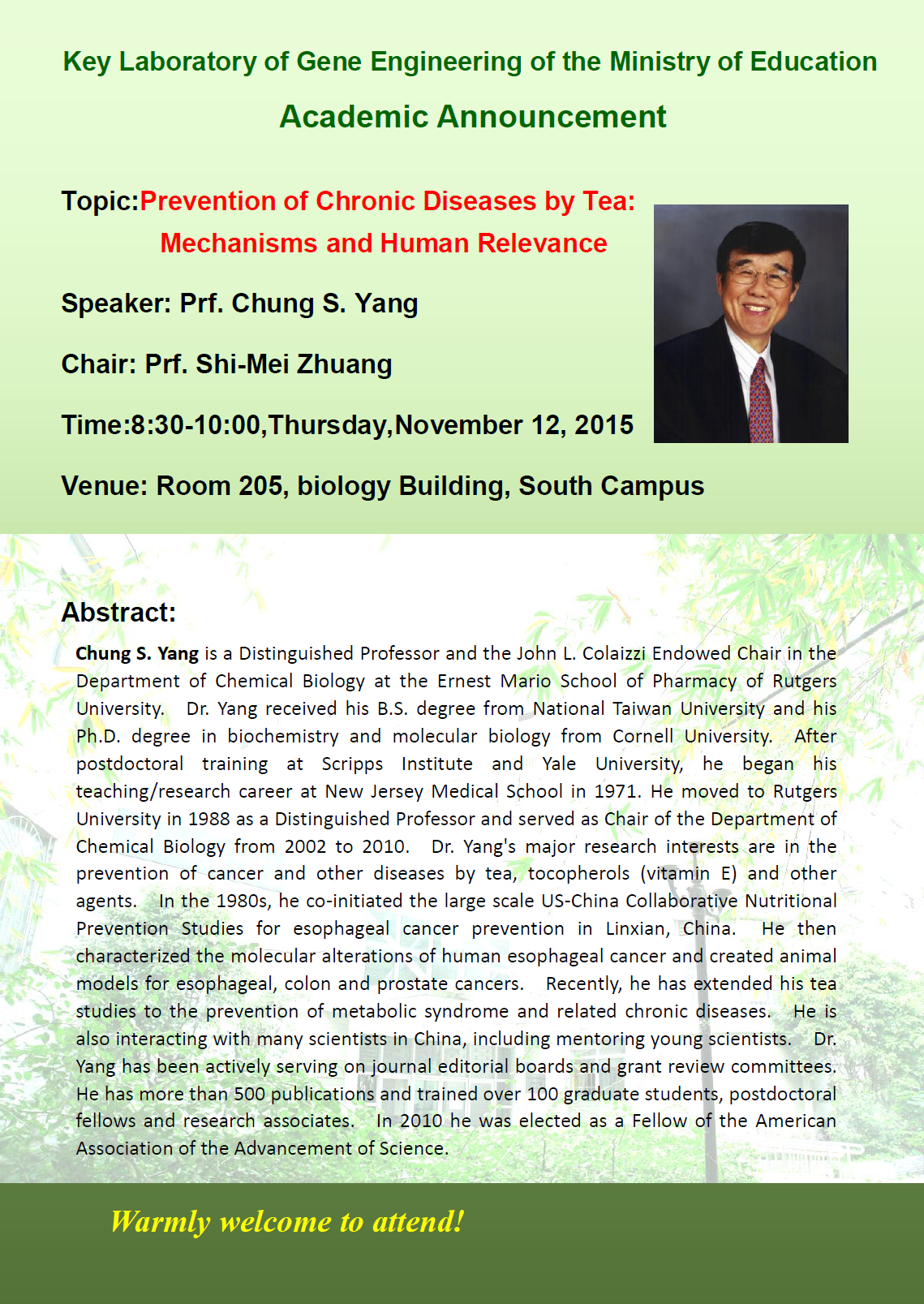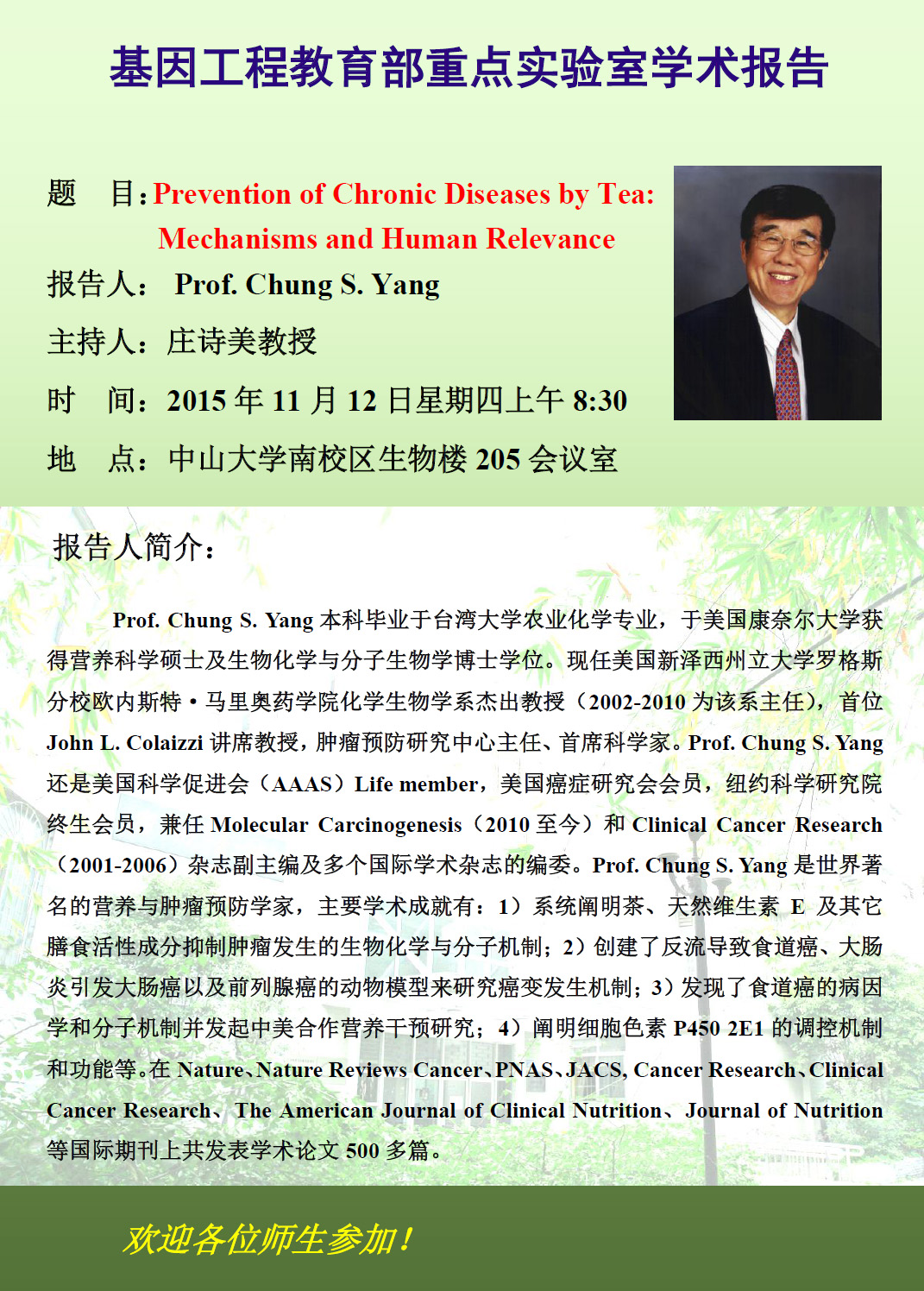 欢迎参加南校区11月12日学术报告
