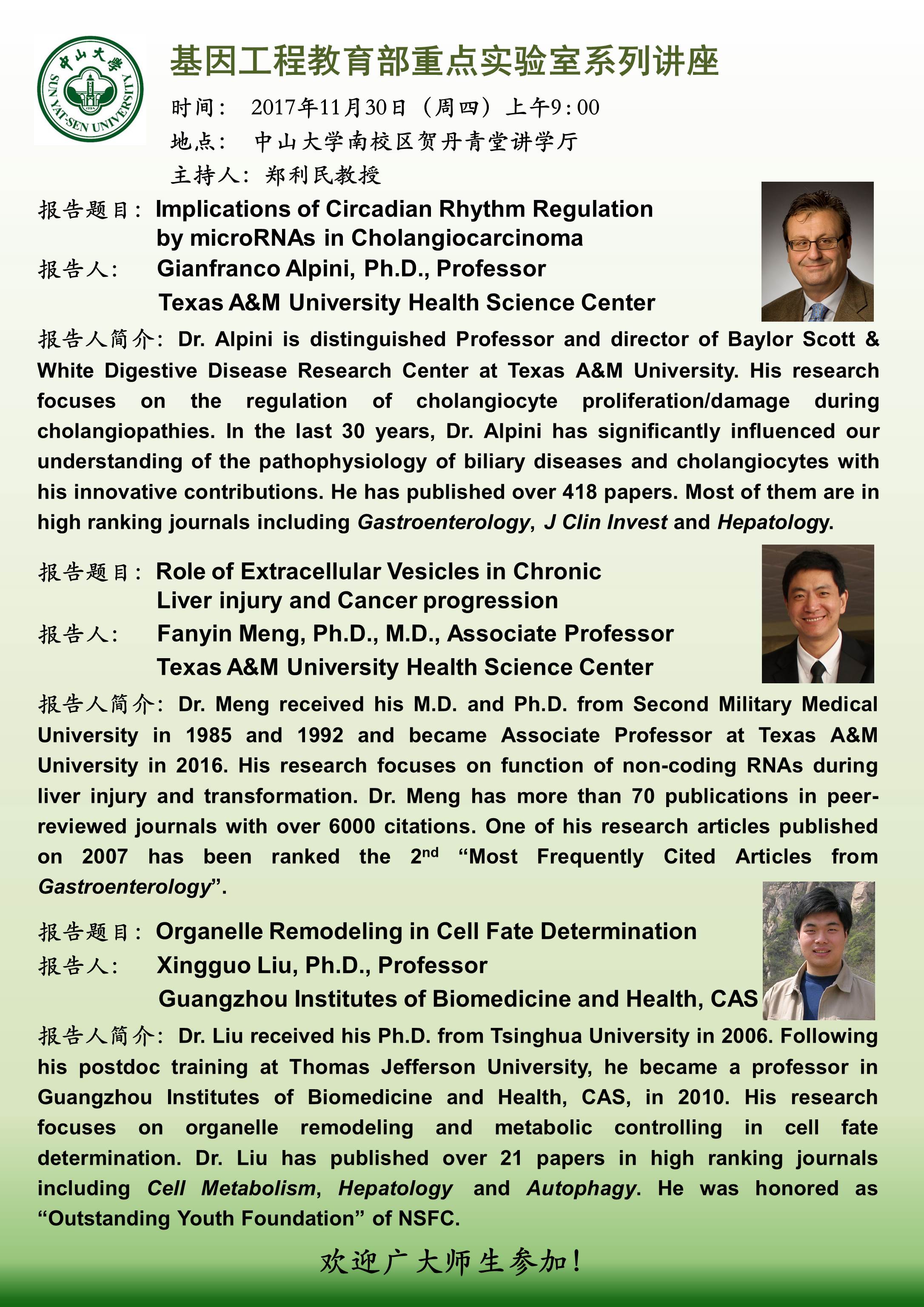 欢迎参加11月30基因工程教育部重点实验室学术讲座