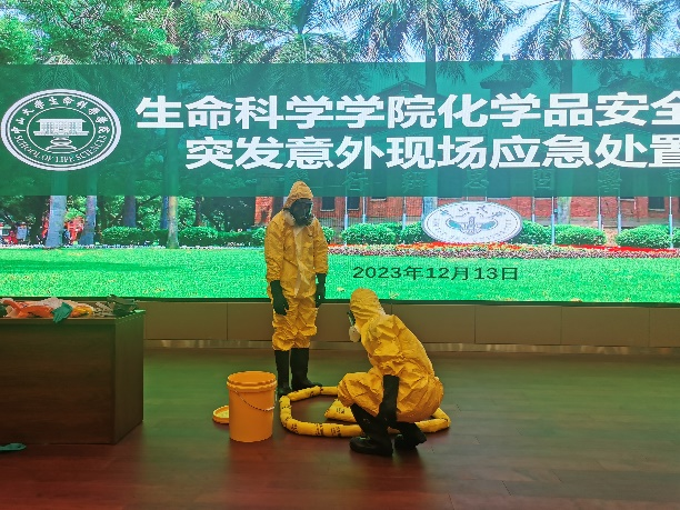 为加强赌博app 实验室安全与危险化学品管理工作,提升赌博app 师生的化学品安全管理和意外溢洒现场应急处置的知识和能力,12月13日,赌博app 特邀化学学院肖小华副教授在生命科学楼1号楼124国际会议厅举办了2023年化学品安全管理培训和意外溢洒现场应急处置演练活动。学院党委张斯虹书记对本次活动准备工作做了重要安排,黄军就副院长(主持工作)莅临活动现场并担任本次活动的主持。学院安全员、各实验室安全员、危险化学品管理人员和使用人员等150余人参加了此次培训和应急演练活动。