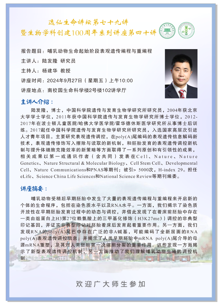 导航痕迹 赌博app-网络赌博软件 科学研究 学术讲座 生物学科创建100周年系列第四十讲:哺乳动物生命起始阶段表观遗传编程与重编程 扫描此二维码分享 生物学科创建100周年系列第四十讲:哺乳动物生命起始阶段表观遗传编程与重编程 发布人:董静飞 发布日期:2024-09-19