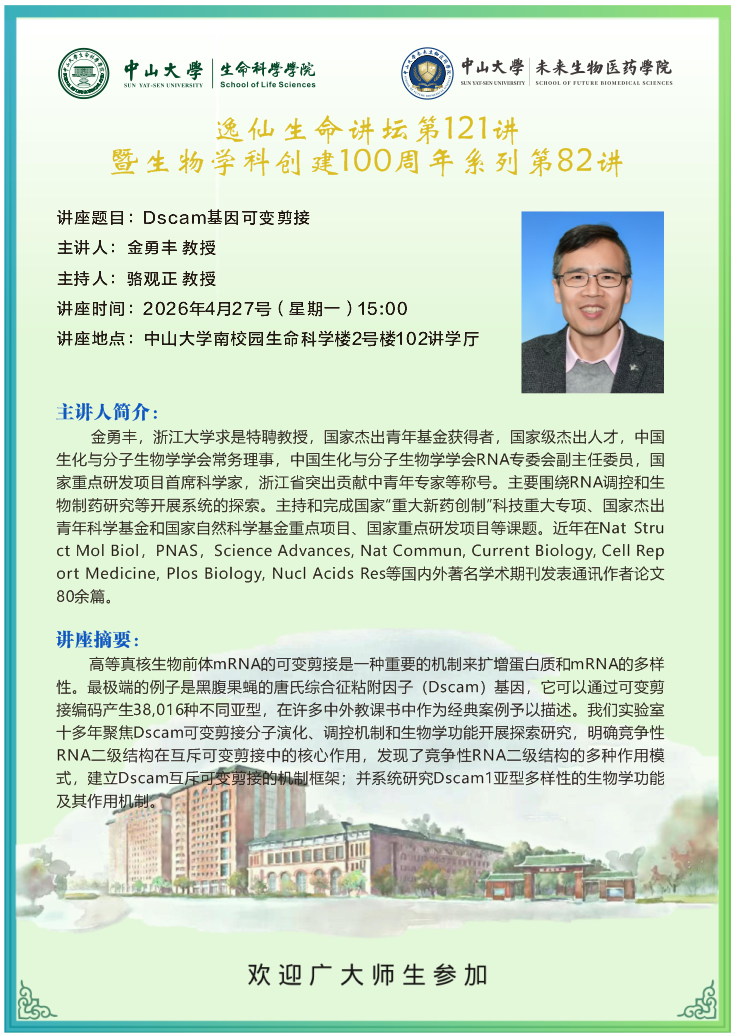 导航痕迹 赌博app-网络赌博软件 生科百年 系列讲座 生物学科创建100周年系列第八十二讲:Dscam基因可变剪接 扫描此二维码分享 生物学科创建100周年系列第八十二讲:Dscam基因可变剪接 发布人:李晶 发布日期:2026-04-22